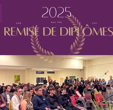 LâĂ©quipe Ă©ducative, les personnels et les familles Ă©taient au rendez-vous pour fĂ©liciter les laurĂ©ats de cette promotion. AprĂšs les discours dâaccueil, chacun a pu revivre les temps forts de lâannĂ©e et partager un moment dâĂ©motion lors de lâappel des diplĂŽmĂ©s.