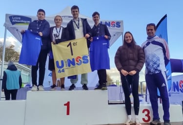 Grâce à cette belle dynamique, ils remportent la première place en sport partagé et décrochent leur qualification pour la finale académique, qui se déroulera le mercredi 17 décembre à Sablé-sur-Sarthe. La remise des médailles a été faite par Maéna Drouin et Erik Clavery, tout deux athlètes de haut niveau (photo).
