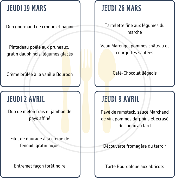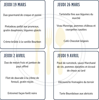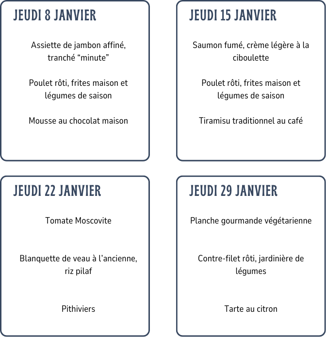 Nous sommes ouverts le jeudi midi, parfait pour un déjeuner convivial.