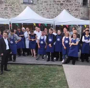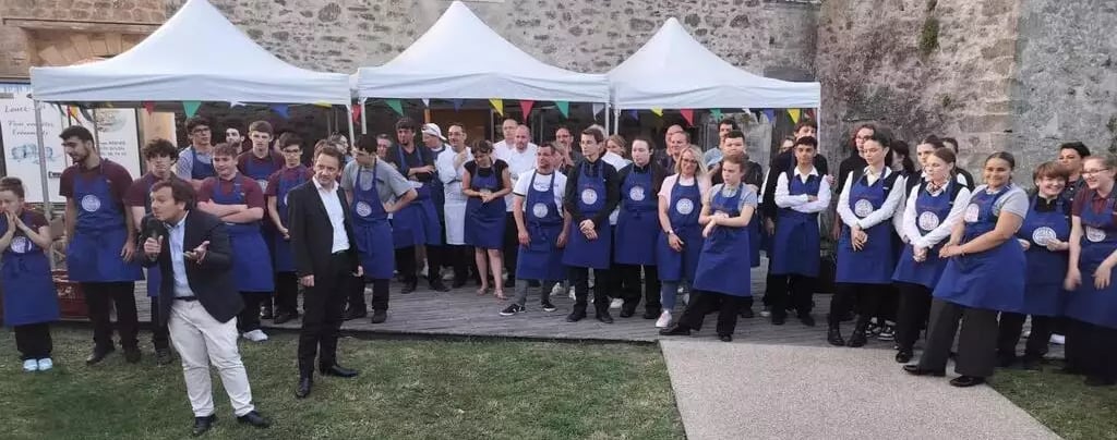 Le 28 juin dernier, l’organisation de la deuxième édition du Dîner des chefs, dans la cour du Pavillon de Bouin (Vendée) a obtenu un franc succès. Un succès dû en partie aux élèves du lycée hôtelier Louis-Armand-de-Machecoul venus en renfort des différents professionnels du goût pour la confection du repas et le service, auprès des 340 convives. Parmi ces professionnels, Thierry Odéon, saunier, Hélène Merlet de la Chocolatine, Camille Martel de la Cave de l’Isle de Bouin et Christian et Anne Girard des Douceurs du Carabouin.