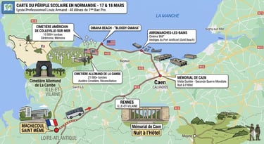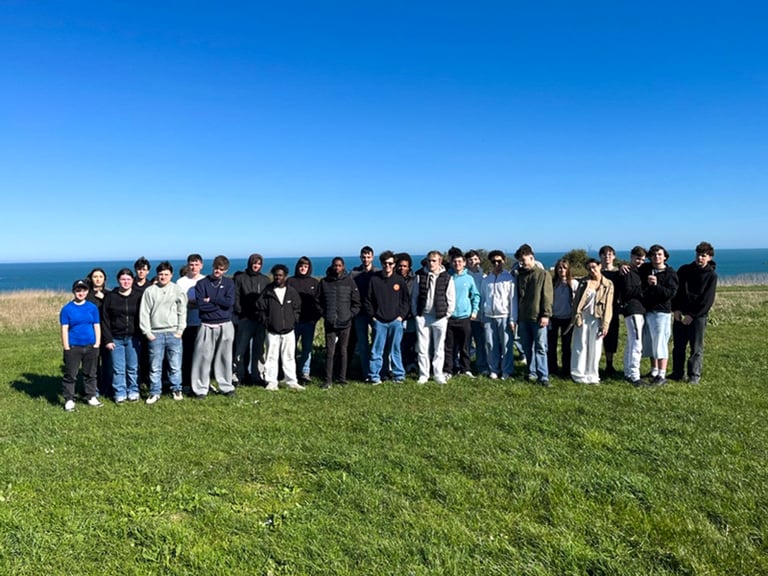 Les 17 et 18 mars, 40 élèves de première Bac Pro ont pris la route pour 2 jours en Normandie, accompagnés par leurs professeures d'Histoire, Mmes Girona et Couton, M. Langlais, leur bien nommé professeur d'anglais et M. Bretagne, documentaliste du lycée.